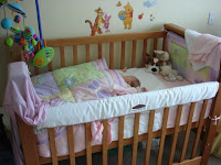 Baby Amber has advanced to her big girls bed. She's now in a cot and looks cute as a button in it. Its far to big for her and she 'll probably be in it till she's 5 but isn't she just too cute in her bed.